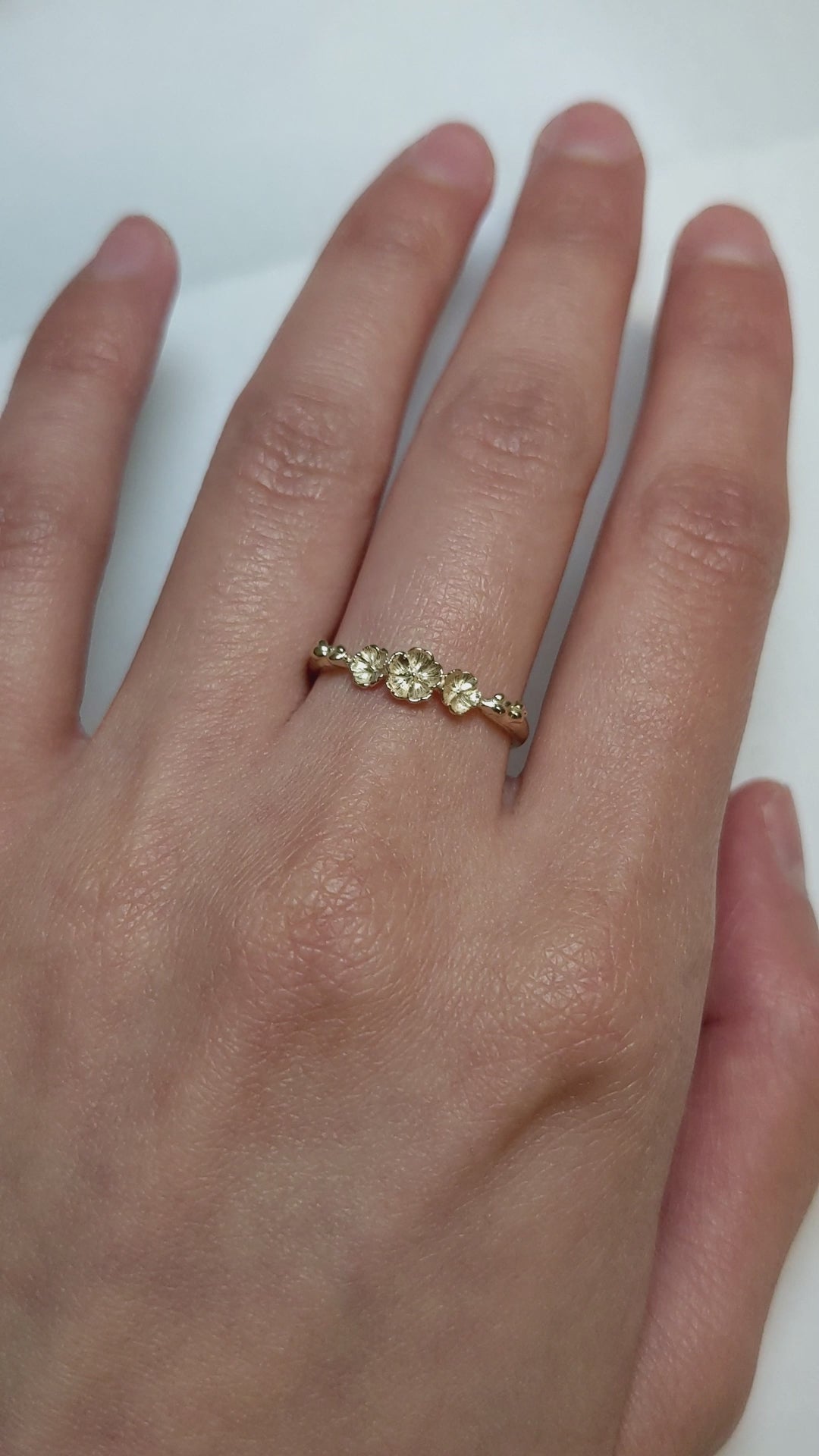 · The centre flower is between 4.5 to 5.0 mm in diameter, scaled to the ring size.