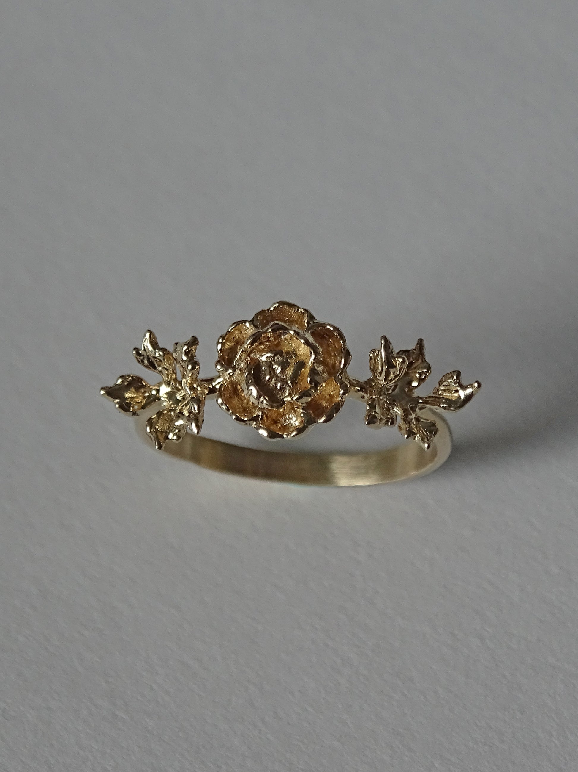 The Peony Ring can be made in a higher karat, other colours of gold, or modified into an earring or bracelet design.