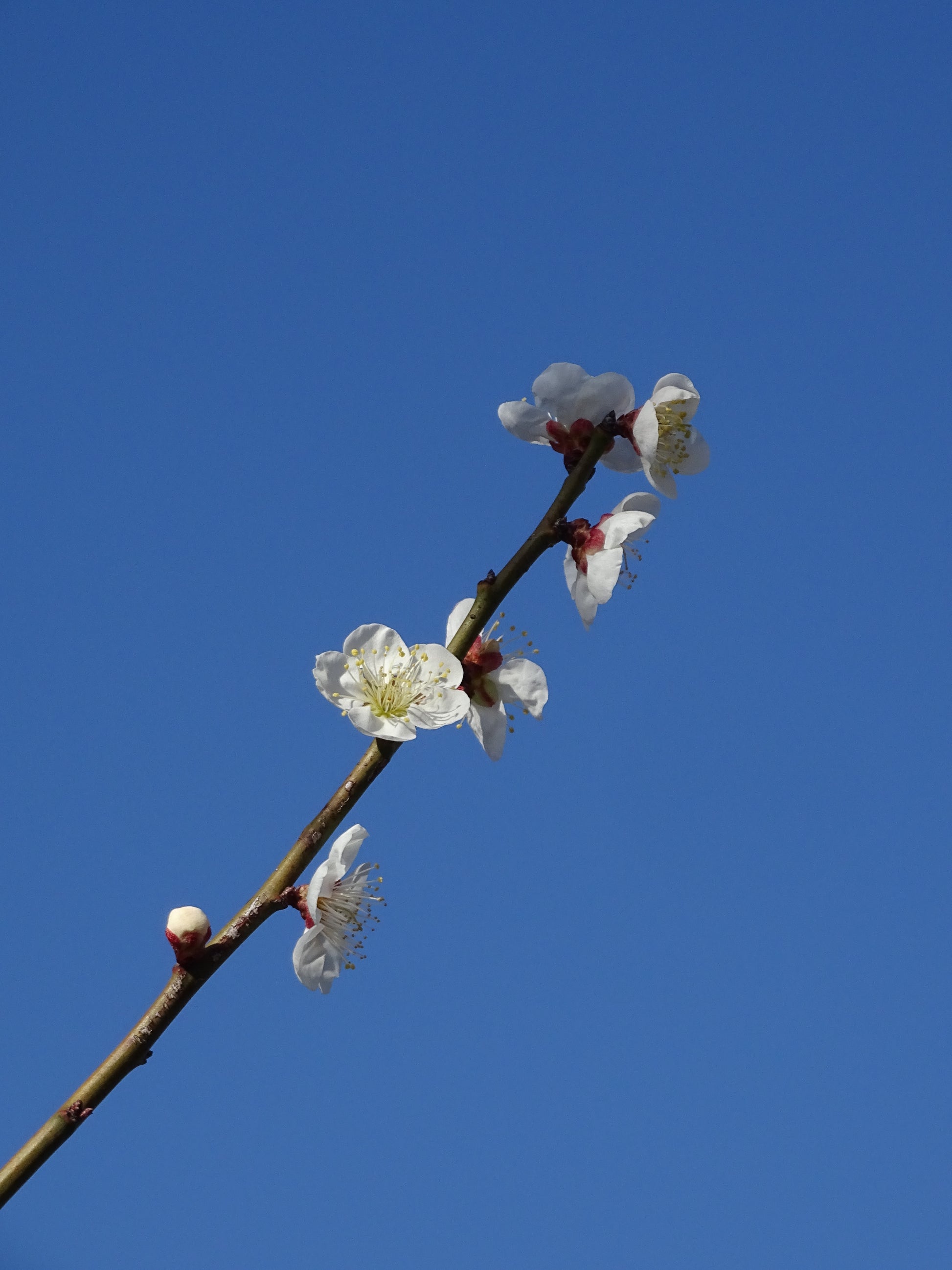 Delicate beaded flower bracelet in transparent blue and pearl white, with metallic gold accents. A colour match for white flowers against a daylit sky! ☁️